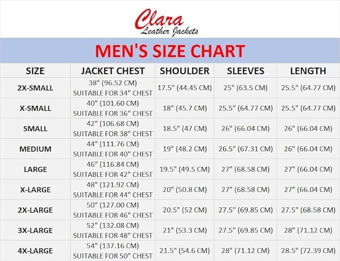 | MEN'S SIZE | XX-SMALL, X-SMALL, SMALL, MEDIUM, LARGE, X-LARGE, 2X-LARGE, 3X-LARGE, 4X-LARGE |