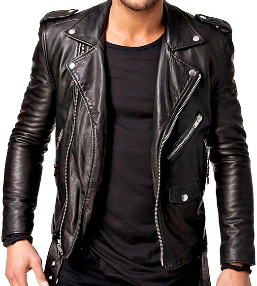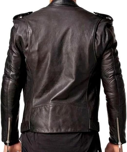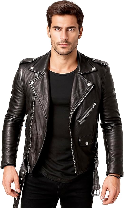 Men’s Black Slim Fit Genuine Leather Biker Jacket