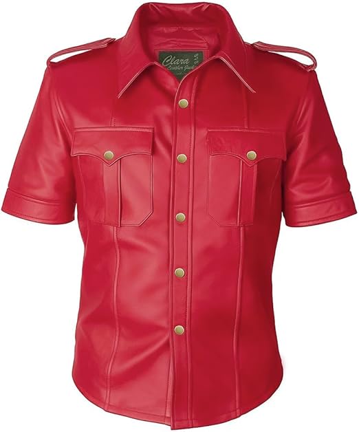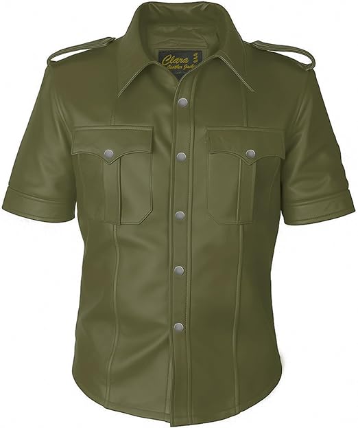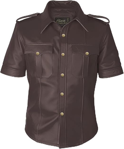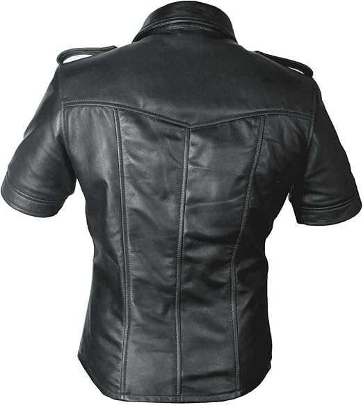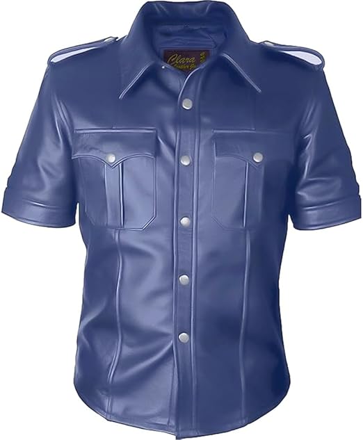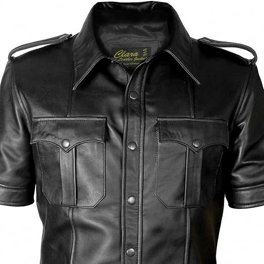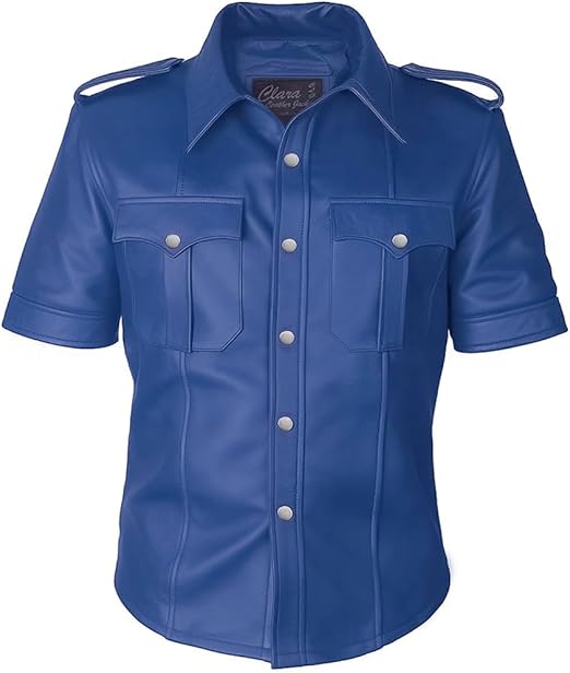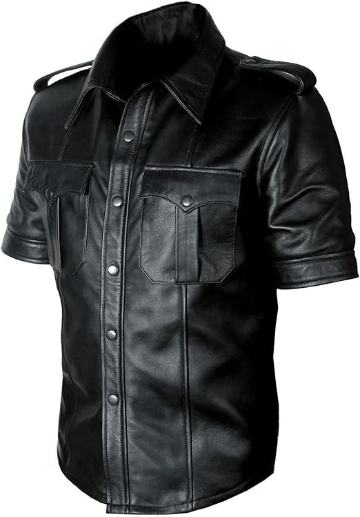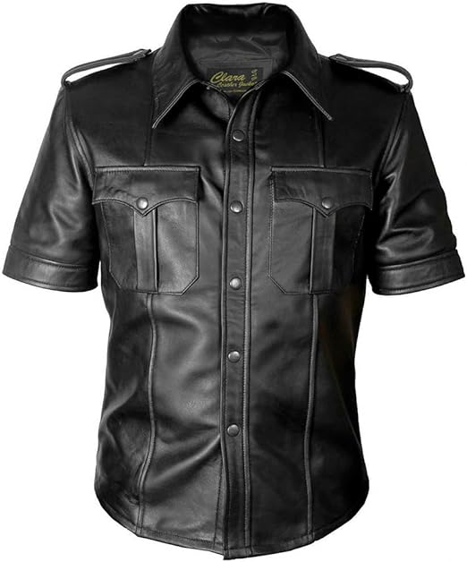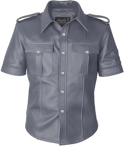 Men’s Real Sheep Leather Police Uniform Bluff Gay Shirt